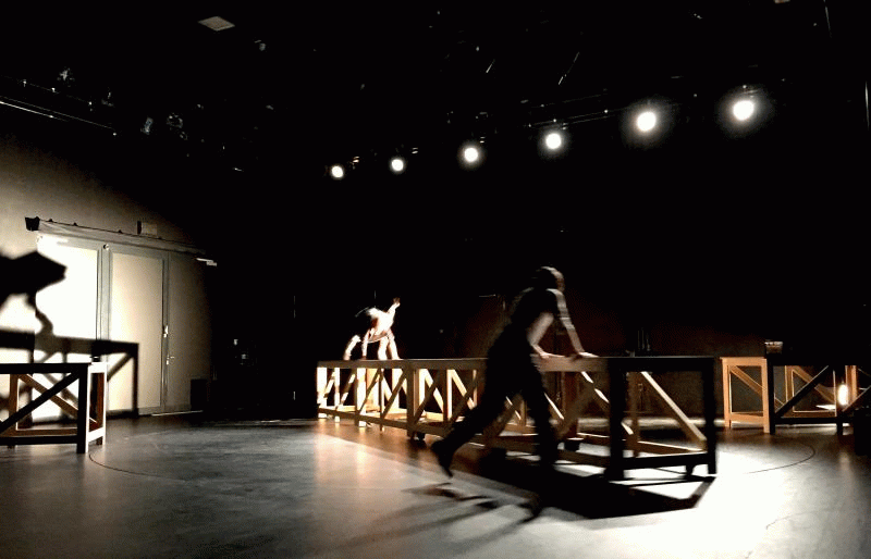 “Das junge Regieteam (…) verortet das Beziehungsdrama in einem dunklen, weitgehend leeren Raum - beherrscht von einem ständig sich drehenden, mehrere Meter langen Laufsteg. Ein Uhrzeiger, der wie die Zeit Stillstand verwehrt, ein Hindernis, das immer wieder überwunden werden muss, ein Teufelskreis, dem nur durch Verlassen der Drehbühne und damit des Geschehens aus dem Weg gegangen werden kann. Ohne dass die Zeit angehalten, ein Ziel erreicht, die Konflikte gelöst werden. Das zudem hin und wieder zur Waffe wird, wenn jemand es heftig anschiebt und so den darauf Stehenden zwingt, sich festzuklammern.”